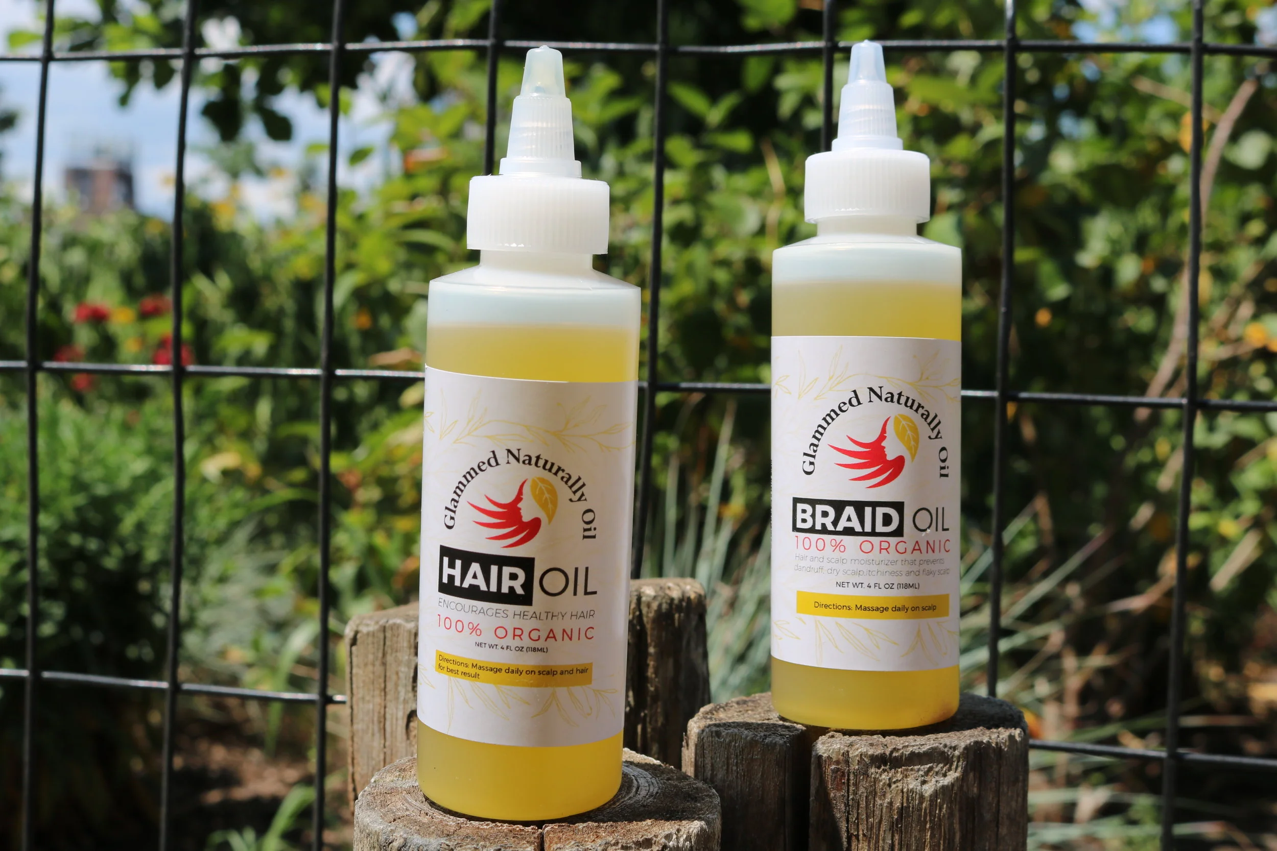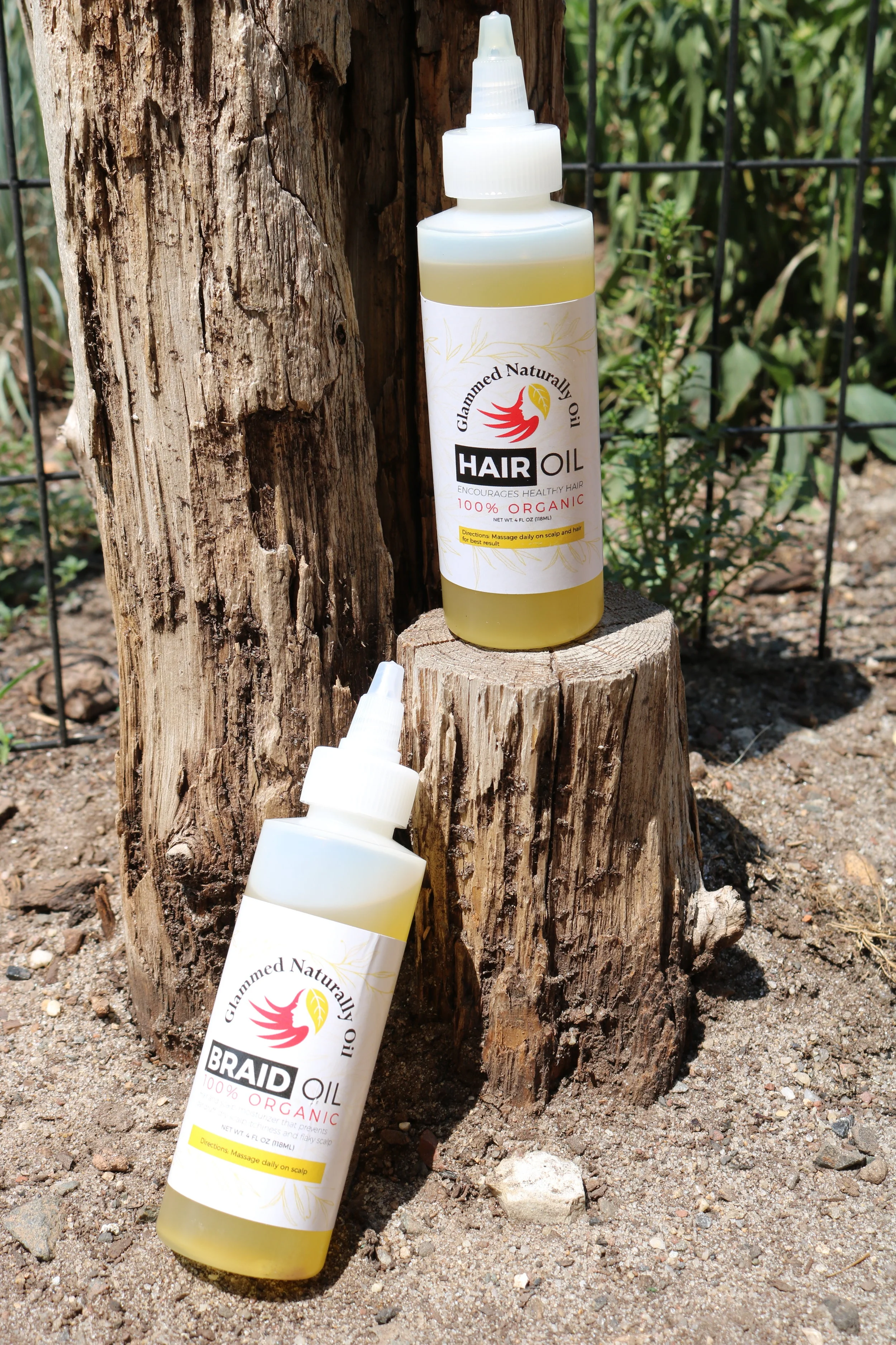 Hair oil encourages growth and the braid oil helps eliminate dandruff, itchy and dry scalp